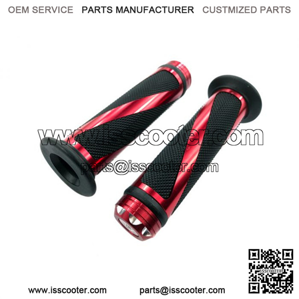 MYK Universal billet aluminum grip set (7/8 handlebar) Red – Left and Right Grip Set, Universal Fit (No bar end) – Non Slip Design – Material: Durable PVC, Gel Rubber & Billet Aluminum – Overall Length: 5 3/8″ (137mm) – Left Side (Bar) Hole Diameter: 7/8″ (22mm) – Right Side (Throttle) Hole Diameter: 1″ (25mm) Fitment: Universal for most motorcycles and scooters with a 7/8″ left grip and 1″ right grip.