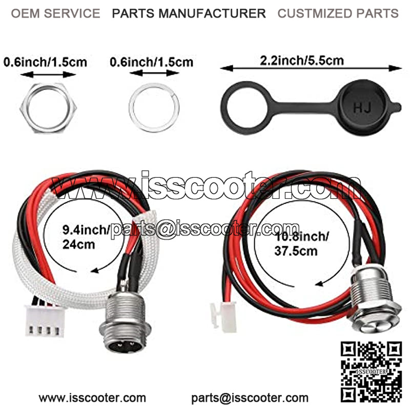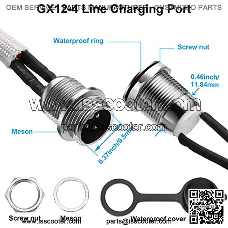 GX12-4 line charging port: charging cable with 3-pin male charger port, 4-pin white plug, it is approx. 9 inch/ 24 cm in length; The reset switch cable is approx. 14.7 inch/ 37.5 cm in length