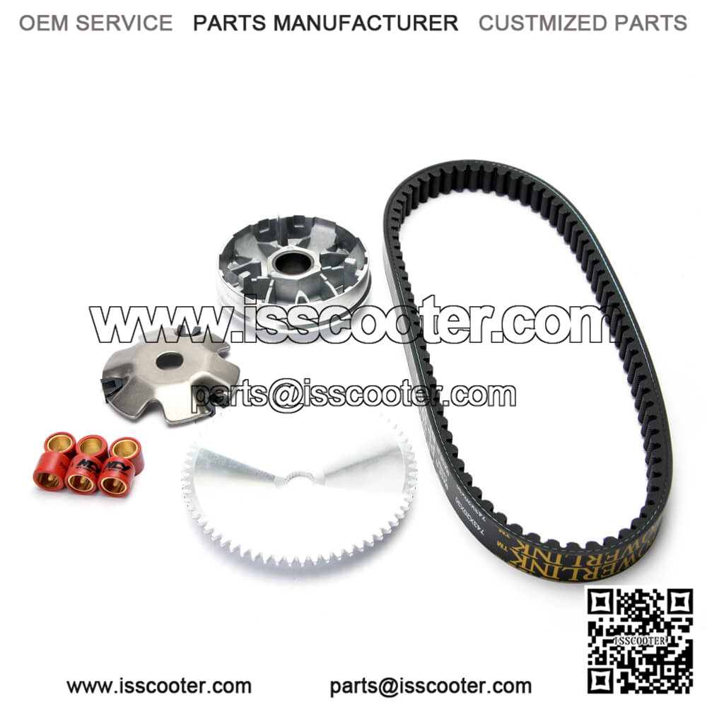 This transmission kit for most QMB/GY50 style 50 cc (4T) Chinese scooters is the highest-quality OEM replacement kit available anywhere, and that will allow your transmission to run smoother, longer, and more efficiently. You’ll never have rollers flatten out on you after 200 miles or have your drive face cut up your belt ever again.