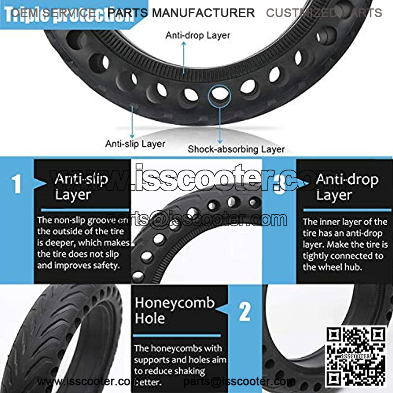 New honeycomb tire 8.5 design – TOPOWN solid tire for electric scooter has a honeycomb design. The honeycomb hole can dissipate heat and absorb shock. This 8.5 inch scooter tire has better elasticity to respond to road irregularities, such as meadows, uneven roads and flooded roads.what is more??gotrax tire is also compatible with gotrax gxl V1/V2, Gotrax XR Ultra/Gotrax XR, Emaxusa Electric Scooter, Swagtron Swagger 5, etc.