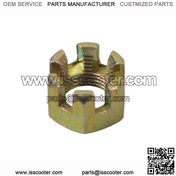 This castle nut attaches the large 20 tooth 420 chain sprocket to the jackshaft assembly The M16-1.5×16 Castle Nut (short for “castellated nut”) is found on the jackshaft assembly on the Baja Mini Bike. This castle nut attaches the large 20 tooth 420 chain sprocket to the jackshaft assembly.