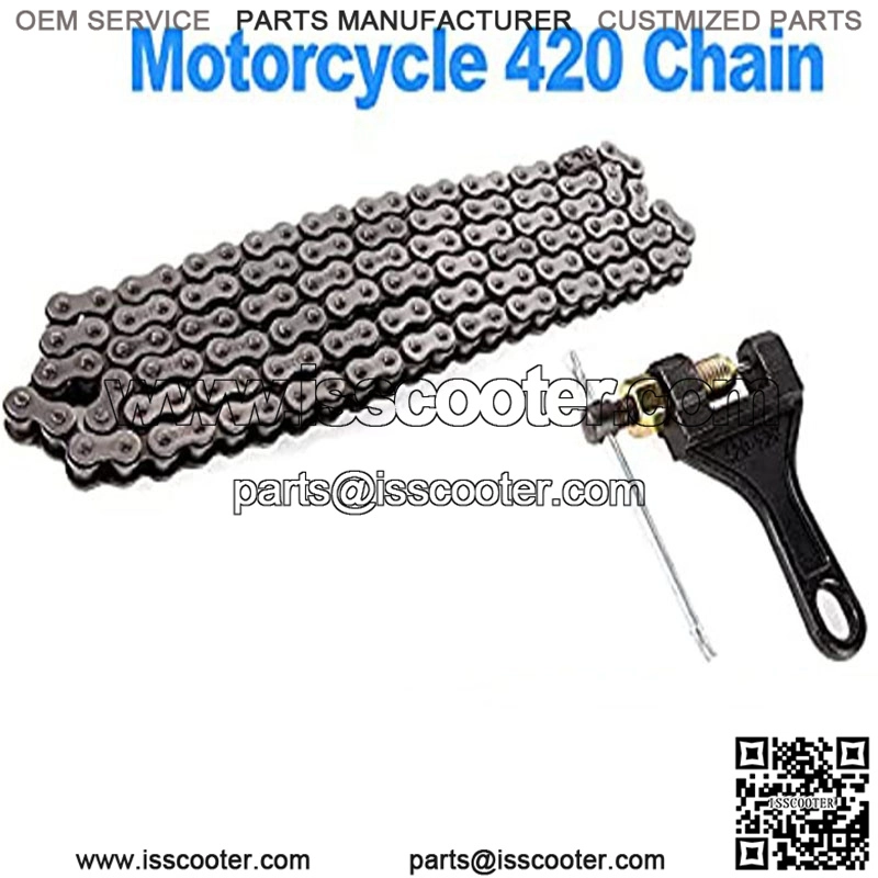 Motorcycle 420 Chain Standard Roller Chain 132 Knots with Chain breaker for 70cc 90cc 110cc 125cc Dirt Pit Bike ATV Quad Go Kart Scooter Mini Bike TaoTao ATV moped quad