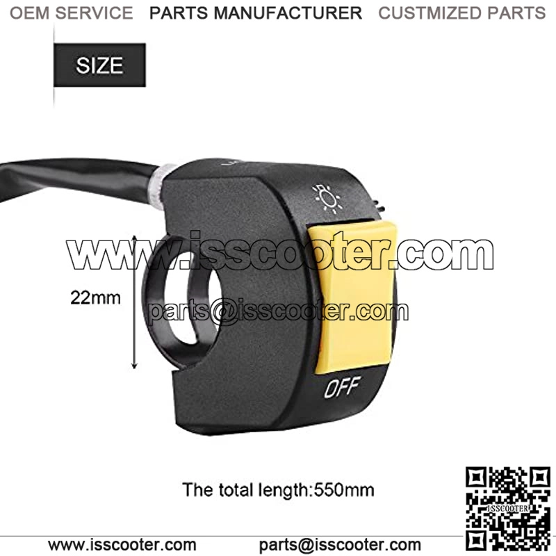 Universal Handlebar SwitchDC 12V/10A. Fit 7/8″ handlebar.Pattern: Yellow Button, Red Button(optional); Total Length: Approx. 550mm / 21.65inch