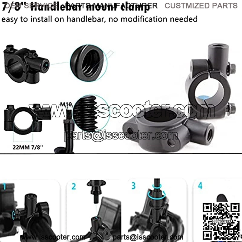 Easy to InstallOur motorcycle rearview mirror is 10mm right hand thread and comes with 7/8″ handlebar mount clamp adapter. You can directly bolt and tighten them on to the mounting point.