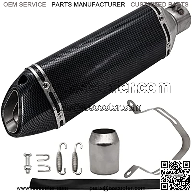 MaterialThe Universal Motorcycle Exhaust Aesthetically pleasing carbon fiber finish which made with Aluminum+Stainless steelReducing Overall Weight For Top Performance To Obtain Max Output.durable, corrosion resistance and rustproof.Suitable for Various Bike StylesIt is a universal slip on exhaust muffler that works with various bike including dirt bikes, street bikes, scooters, ATVs, quad and other bike with pipe diameter 38 mm to 51 mm. This is made possible by its welded stainless steel adapter which enables it to seamless blend fit pipes from 38mm to 51mmGreat Sound Great sounds With a removable DB killer for changing sound. you can hassle-freely to make it super-loud when you remove DB killer, and you can also put the DB killer in to minimize the sound produced.SpecificationOverall Length: 365mm,Connection: 51mm Slip-on type;Motorcycle Unversal Exhaust Slip on Silencers & Mufflers ,1.5-2″ Inlet Stainelss Steel Motorcycle Exhaust Muffler Slip onWarranty:Manufacturer war