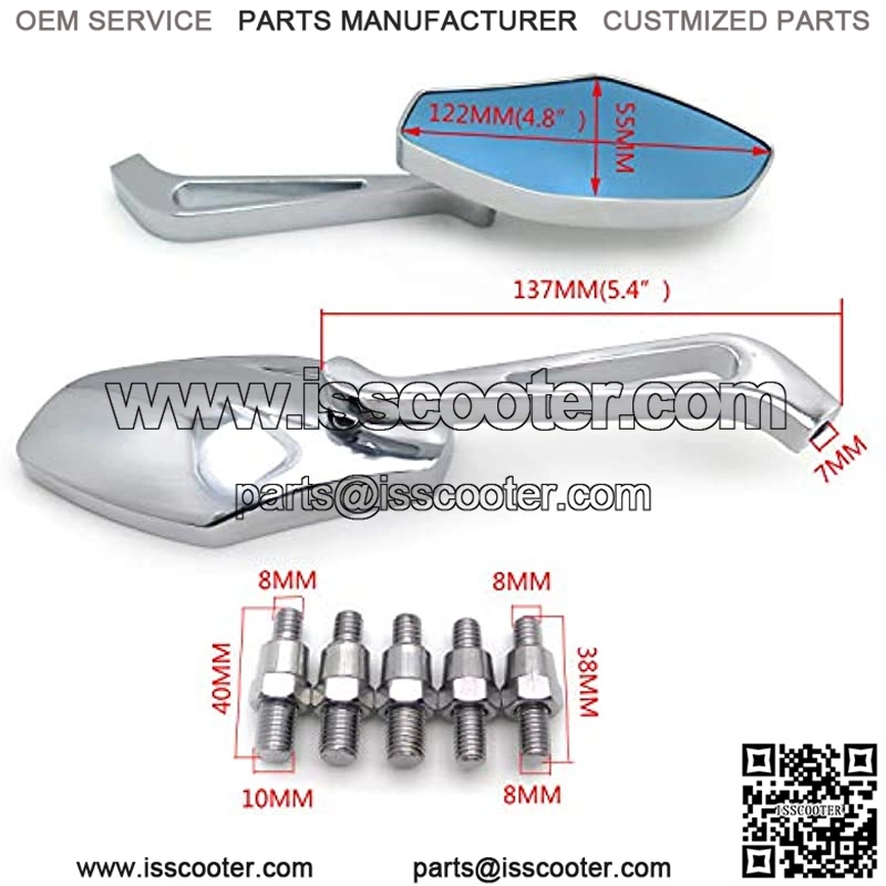 MT400-009- Aluminum Mirrors Compatible With Most Motorcycle With 8mm Or 10mm Clockwise Suzuki Kawasaki Yamaha Harley Handlebar Mount
