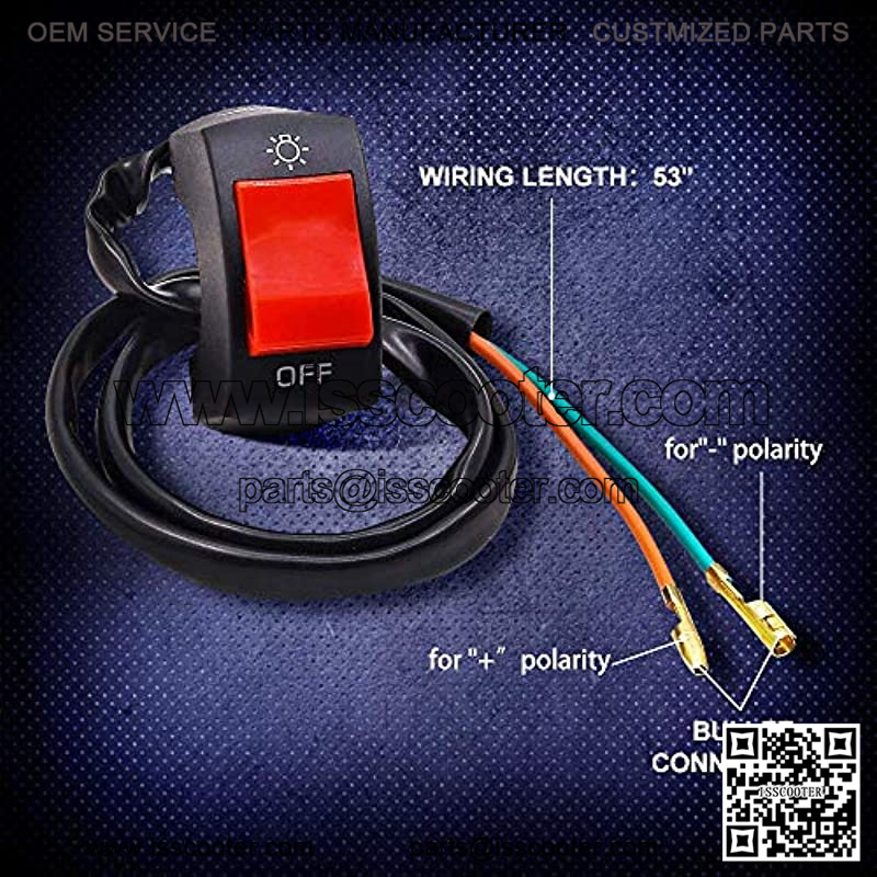 Easy to use and install this ON/OFF switch, red wire for positive polarity and green wire for negative polarity
