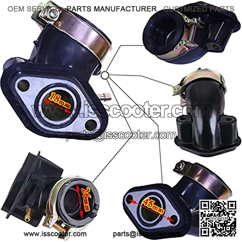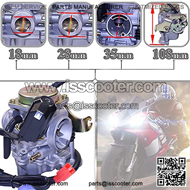 PD18j Carburetor works with most GY6 50cc-80cc 139QMB 139QMA 4 Cycle Engine Scooter Moped Replaces for Kymco Baja TNG with free Air Intake Manifold Pipe and Fuel Filter