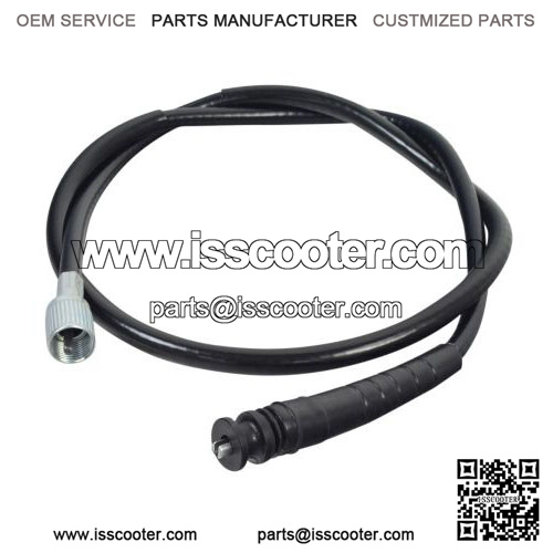 Speedometer cable for street scooters and go-karts with a black plastic snap in end on one end, and a threaded end on the other. See detailed images.