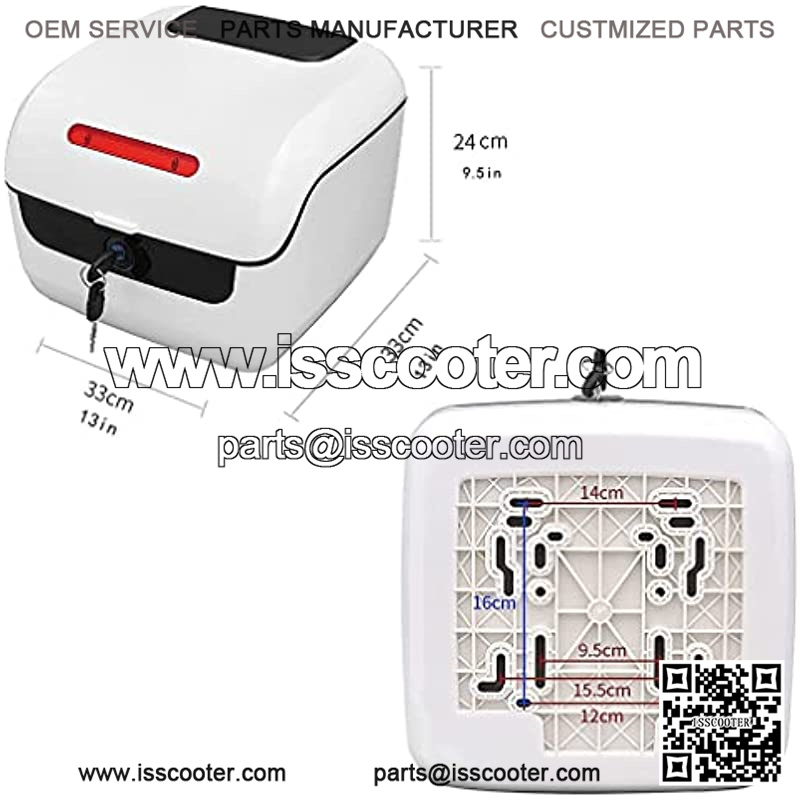 Universal motorbike top box is an optimal trunk for mopeds, scooters, off road motorcycles and street bikes, motorcycle cruiser, bicycles, ATV, or off-road vehicles.* Made of new PP, Double waterproof, scratch resistant, collision resistant, not easy to fade, ot easy to deform, crack or break* Large storage space and comes with a soft backrest. * Can be quickly removed when unlocked – Includes 2 Keys.* Night warning lights, Double buckle anti-shake* Motorcycle top box with all the mounting hardware kits (NO luggage rack!!!)Specifications:Large Universal Motorcycle scooter top box tail trunk luggage case.Product Type: Motorcycle Tail box.Material: ABS cover+PP baseFloor material: Heavy-duty PolypropyleneProduct weight: 1.2kgMaximum load: 3.0 kgColors: White, black, blue, cyan,yellow,silver,red,blue ASize: 33*33*24cm/13″ L x 13″ W X 9.5″ HPackage Included??1x Motorbike top case2x Safety keys(Fitting material Included)1x install instructionNotice:Our this motorcycle trunk fit for any model motorcycle which has a rack ,so make sure that you have a Luggage Rack to mount this box.Satisfaction guarantee:If you have any questions, please feel free to leave us a message. We will reply you within 24 hours and provide you with the best service.