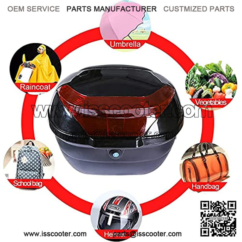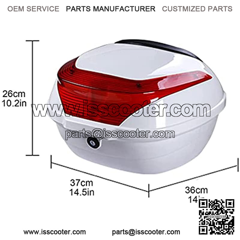 Universal motorcycle top box is an optimal trunk for mopeds, scooters, off road motorcycles and street bikes, motorcycle cruiser, bicycles, ATV, or off-road vehicles.* Made of new PP, waterproof, scratch resistant, collision resistant, not easy to fade, durable, easy to use.* Large storage space and comes with a soft backrest. * lock and two keys, safe and secure.* Night warning lights, Double buckle anti-shake* Motorcycle top box with all the mounting hardware kits (NO luggage rack!!!)Specifications:Large Universal Motorcycle scooter top box tail trunk luggage case.Product Type: Motorcycle Tail box.Material: ABS cover+PP baseFloor material: Heavy-duty PolypropyleneProduct weight: 1.2kgMaximum load: 3.0 kgColors: Blue, black, white, red, yellow, pink, green, cyanSize: 37*36*26cm/14.5″ L x 14″ W X 10.2″ HPackage Included??1x Motorbike top case2x Safety keys(Fitting material Included)1x install instructionNotice:Our this motorcycle trunk fit for any model motorcycle which has a rack ,so make sure that you have a Luggage Rack to mount this box.Satisfaction guarantee:If you have any questions, please feel free to leave us a message. We will reply you within 24 hours and provide you with the best service.
