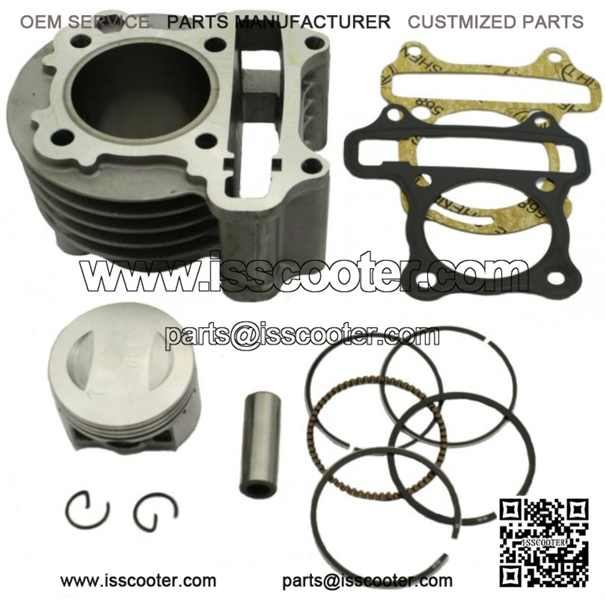 50cc QMB139 4-stroke 50mm, Racing Big Bore Cylinder Set. Kit includes cylinder, piston, rings, piston pin, cir clips, head gasket, and base gasket.
