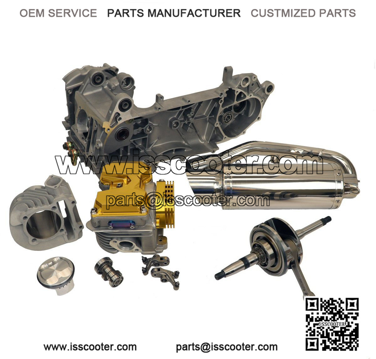 Some recommended additions (not included with kit) are: a high torque starter and starter clutch, an oil cooler kit for street riding, a high quality (such as Bando) 842-20-30 belt, 34mm PWK carburetor, quick throttle, 15/38 rear gears, and a performance clutch and variator kit. Please see related items.