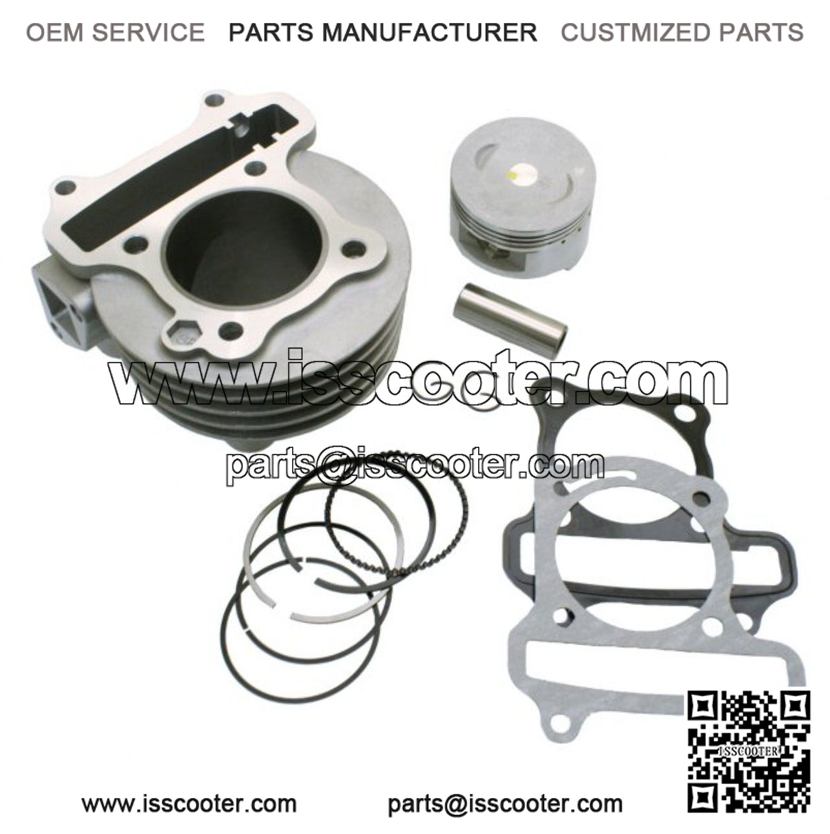 Universal Parts 50mm Big Bore Cylinder Kit for 50cc 4-stroke QMB139 engines. Upgrades to 81.3cc based on a stock stroke of 41.4mm! Includes cylinder, piston, pin, circlips, rings, head gasket and base gasket.