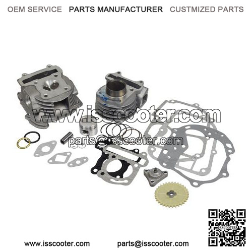 This engine kit includes everything shown in the image; cylinder, rings, gaskets, roller weights, and more. This kit also comes with the cylinder head and valves and is our most complete 50cc engine upgrade kit available. This high performance scooter engine kit is easy to install. Combine with a high performance carburetor and high performance exhaust and get peak performance from your 50cc gas scooter.