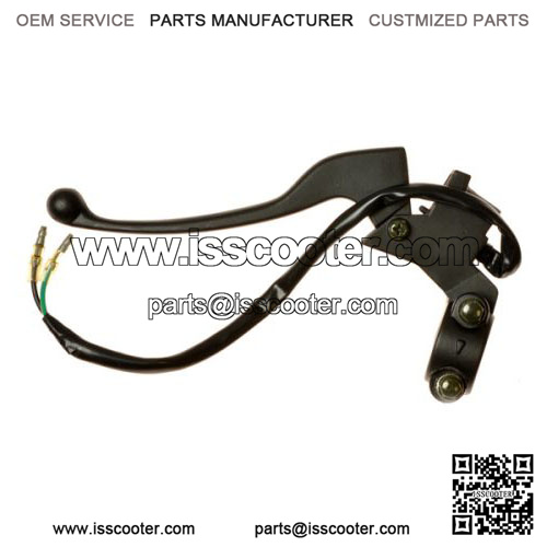 Left brake lever with brake light wiring and switch for many sizes of 50cc, 125cc, and 150cc gas scooters, including the Baja Motorsports 125cc-150cc Baja Sun City gas scooter (SC125).