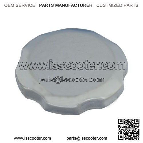 Chrome gas tank cap (fuel cap) has a chrome outer shell and plated steel inner locking mechanism.