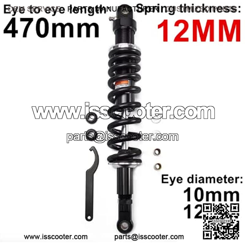 Description??Material: Solid Steel+Aluminium Alloy. Total Length: 500mm (19.68 inch). Eye To Eye Center Length: 470mm (18.5 inch). Spring thickness: 12 mm (0.47 inch). Max loading:200kg/piece 450lb/piece. The shock absorber is a modified universal type, compatible with most 50cc, 75cc, 90cc, 125cc, 150cc, 250cc, 300cc street cars, off-road vehicles, karts, ATVs, motorcycles and quad bikes.Universal fit for most vehicles, like CBR600RR CBR1000RR CB500 YZF-R1 YZF-R6 YZF-125 XC EXC XCF R800GS R1200GS, etc.
