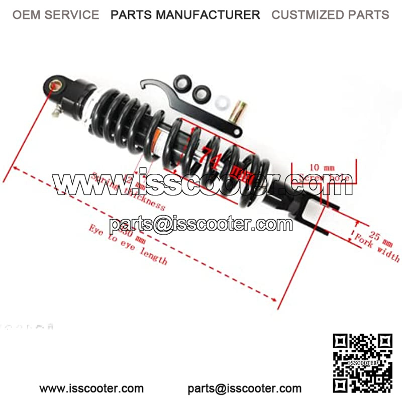 High-performance air shock absorber: The suspension provides smoother driving and better overall damping management, improving driving comfort, motorcycle handling and driving safety. Copper sleeve size: upper 12mm, lower fork: 25mm wide, M10 screws