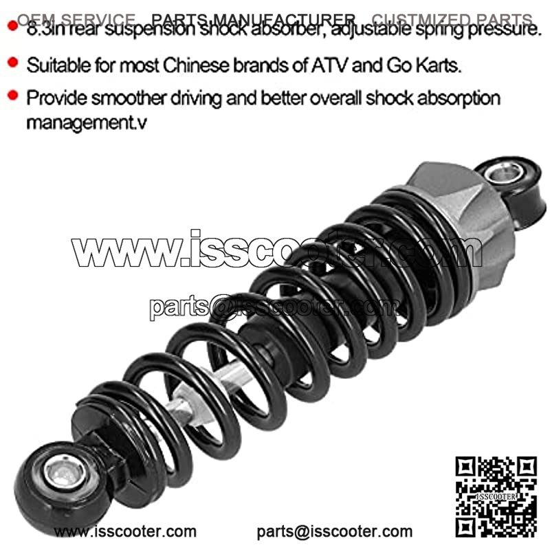 Ideal riding accessories: Universal 8.3-inch rear suspension shock absorbers, spring pressure adjustable, to meet your different needs. Provides smoother driving and better overall shock absorption management, bringing a better riding experience.