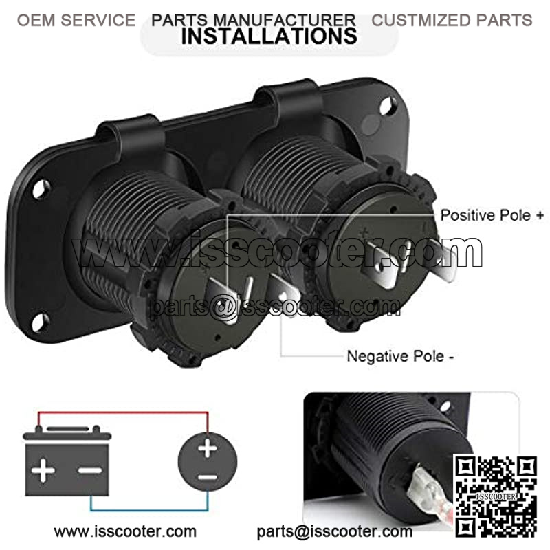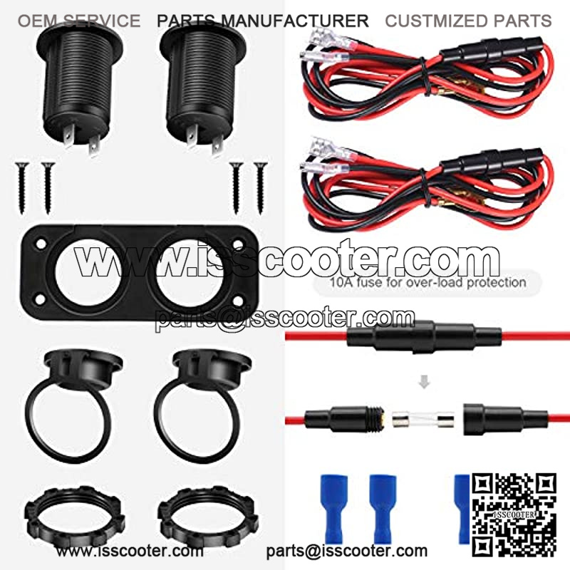 Easy to use: No need to cut large holes in the panel. Place this seat on the dashboard and fix it with 4 screws and 4 insulated terminals (included). Suitable for travel use of multifunctional products Multifunctional two-hole panel for DIY demands, detachable to replace other charger sockets or anything else that fits Widely used with electrical power equipment: vehicle, GPS, DVR. Run multiple accessories at the same time, very convenient and easy to us Made of ABS and Aluminum material, this car charger has the features of better heat emission, wear resistant and non-flammable Package Content: 1 x 2 Hole Cigarette Lighter Socket Panel Mount Cover; 2 x Cigarette Lighter Socket; 4 x Insulated Terminals; 4 x Screws; 2 x Connection Wires