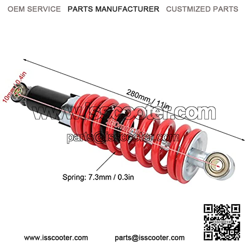 Fitment—- This front shock absorber is suitable for 70 125CC Motorcycle Pit Dirt Bike ATV. Pitch Row is about 260mm/10.2in. Weight: 1000-1200lbs. Please confirm whether the product is suitable before purchasing