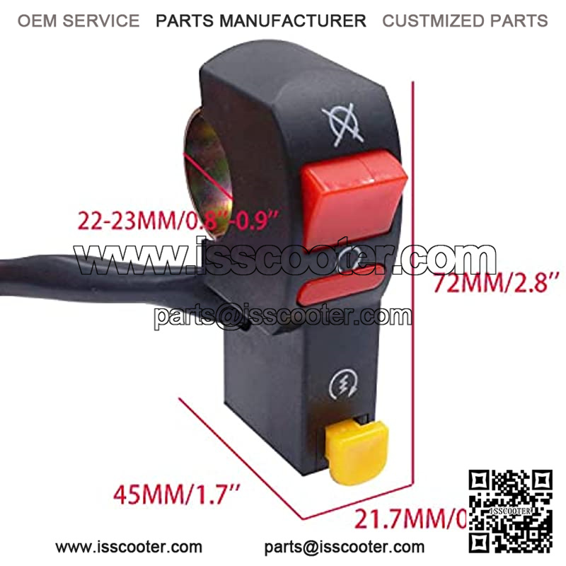 Switch Size(Approx): 21.7x72x45MM/0.85″x2.8″x1.7″;Install diameter: 7/8″ 22mm;Handlebar switch is used on DC 12V electrical system