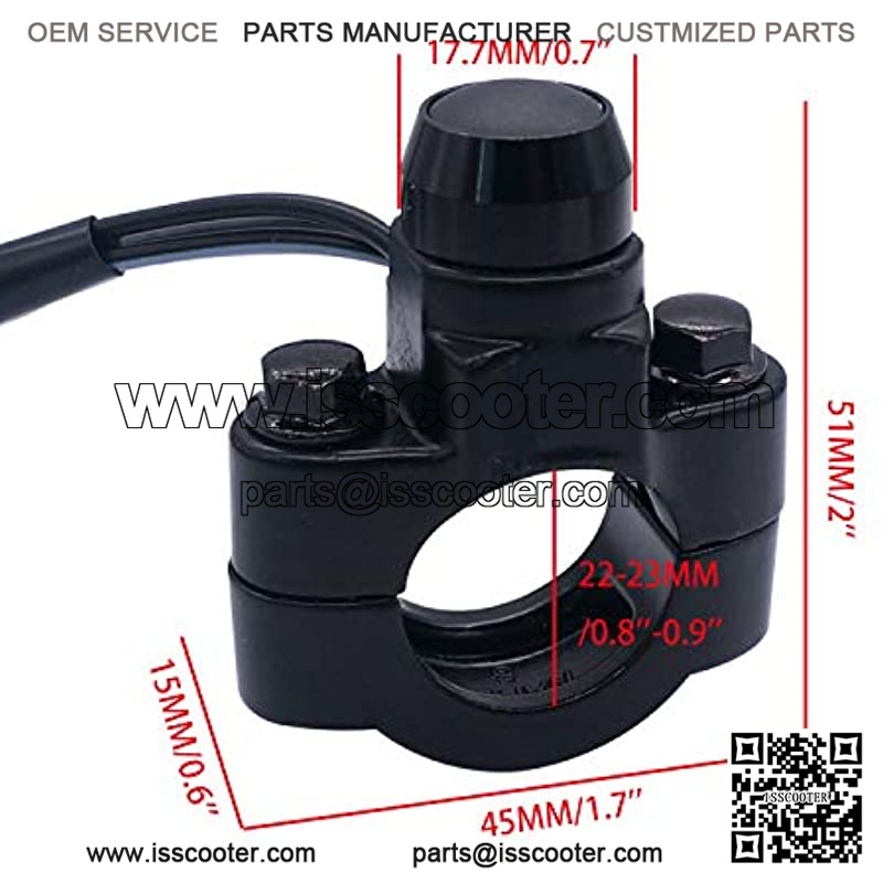 Switch Size(Approx): 51x45x15MM/2″x1.7″x0.6″??Wire Length: 20.08inch/ 55cm;Install diameter: 22MM-23MM;could be used on DC 12V electrical system.