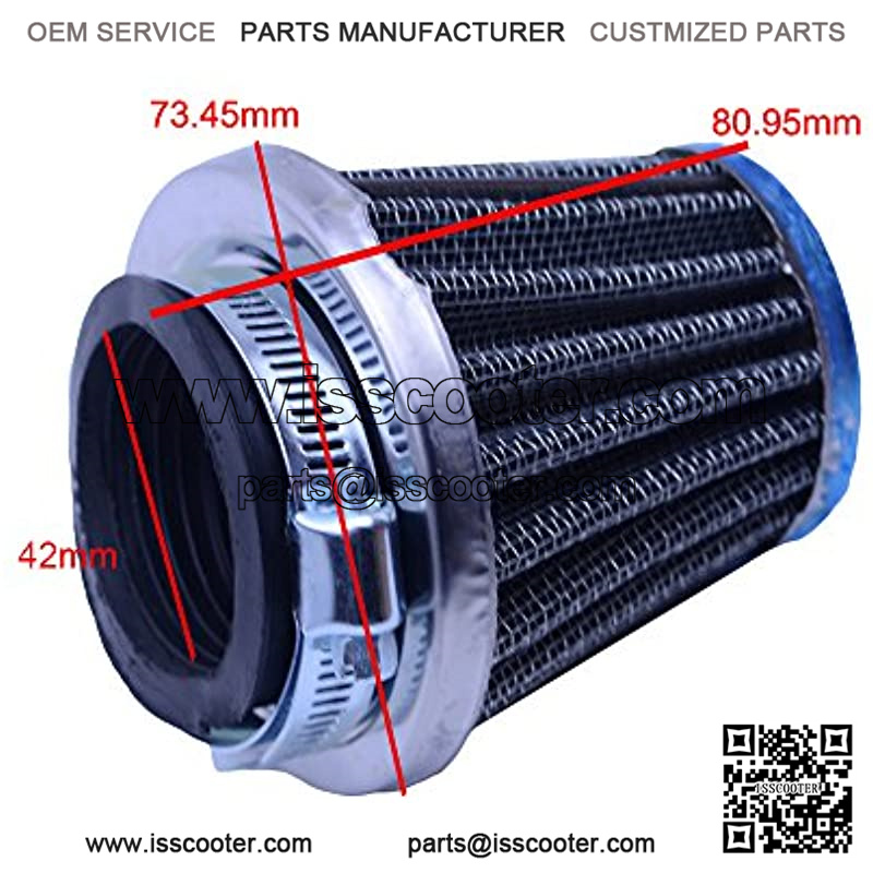 ?? Air Filter Mount Diameter:44mm;Outside Diameter at Widest Point:74mm;Outside Diameter at Top:57mm;height:80mm;Material:Iron + Rubber+ Filter paper