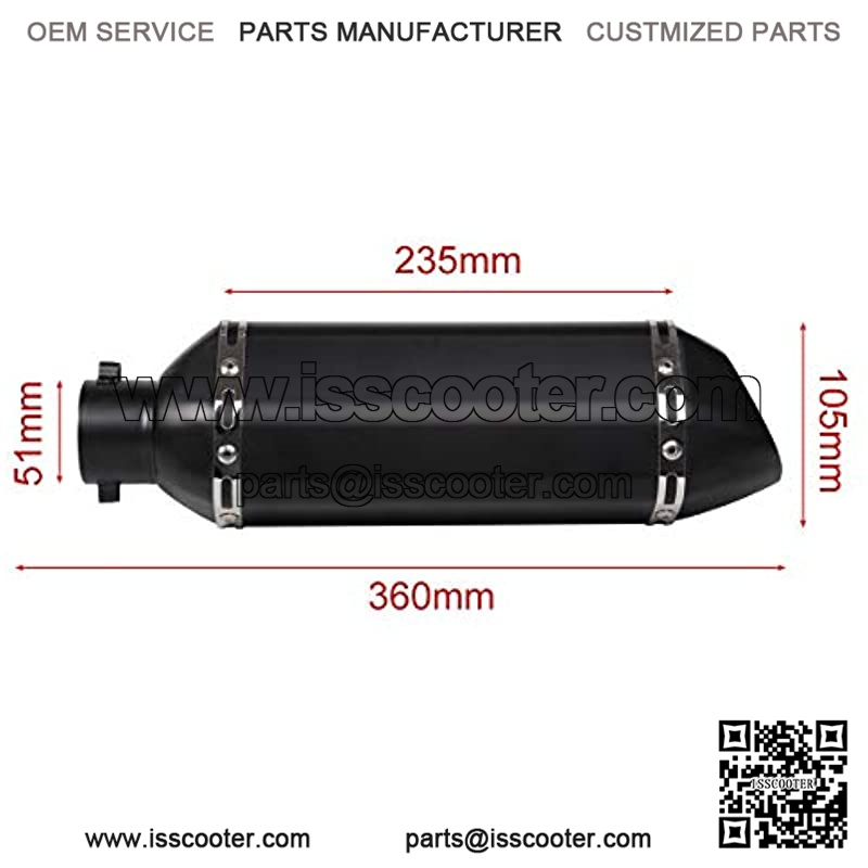 The Universal Exhaust Muffler Can Be Used for Dirt Bike, Street Bike, Scooter, ATV, Quad and Any Other Bike with Pipe Diameter 38-51 mm.