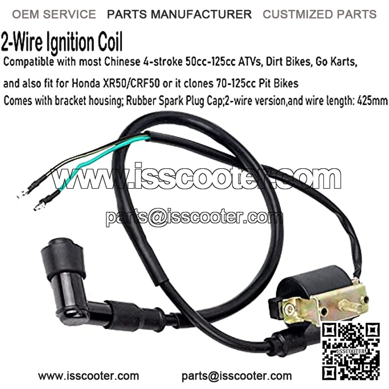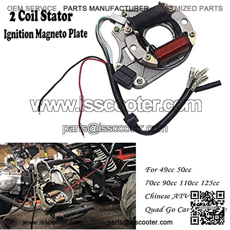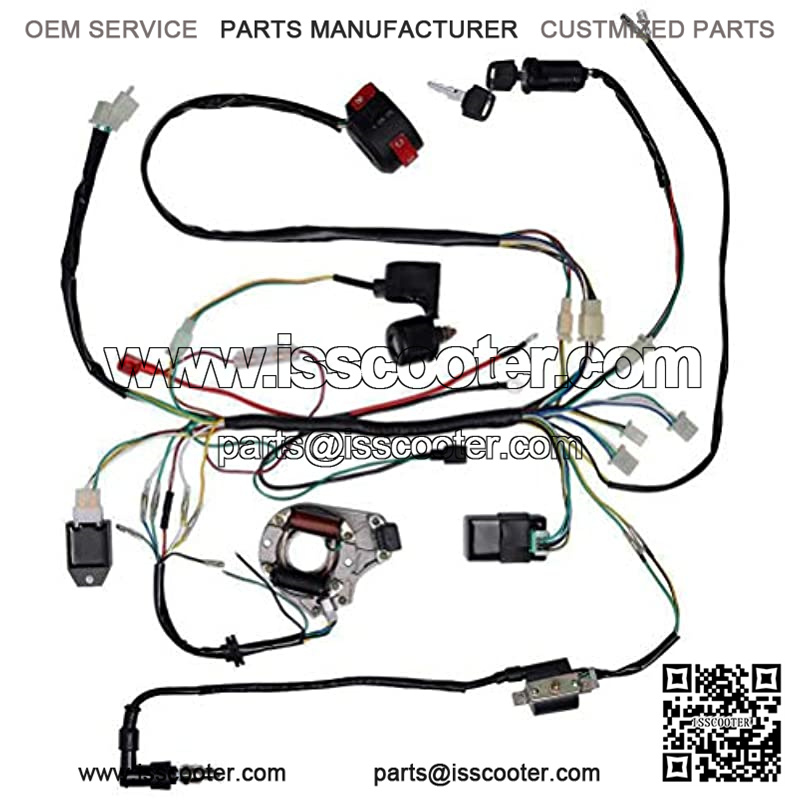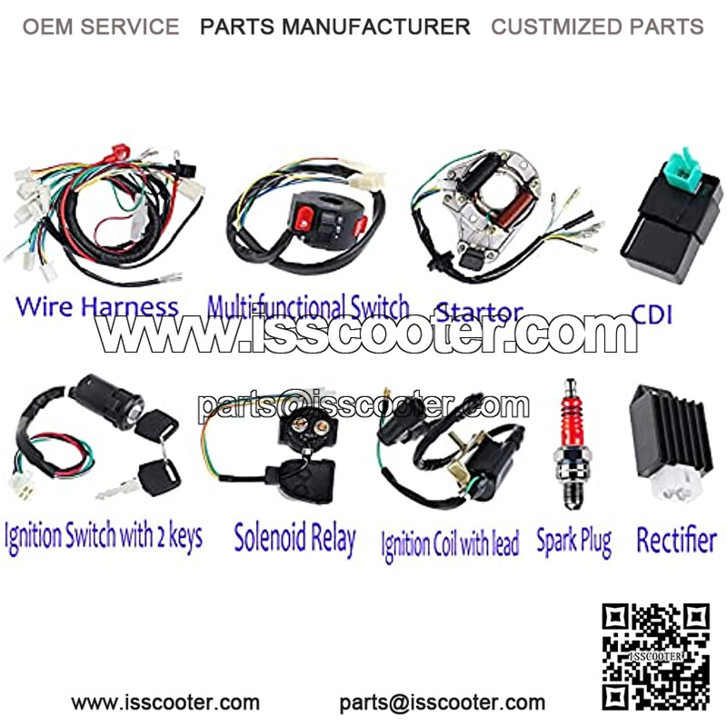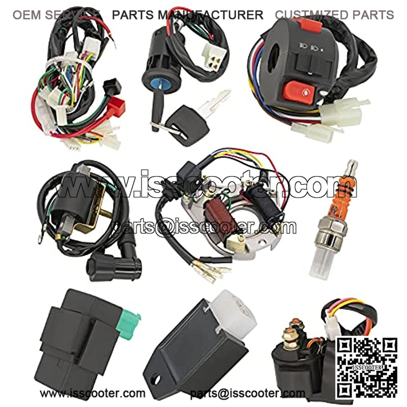 This is a complete atv wiring harness kit, include 1x ATV Wire harness,1x CDI(5Pin AC),1x Solenoid Relay,1xRectifier (Voltage Regulator) ,1x Ignition Switch (2 keys, waterproof),1x Upgraded Multi-functional ATV Switch,1x Stator (Magneto Generator),1x Ignition Coil with lead and 1x Spark plug.Good value for money,easy for replacement.2 Coil Magneto stator ignition coil scooter compatible for 50cc 70cc 90cc 110cc 125cc Taotao Kazuma SSR Baja ATV Quad Dirt Kick Bike 4 Wheeler.