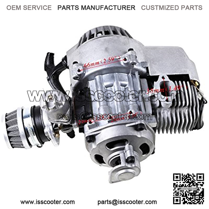 Complete assembled 49cc 2 Stroke Engine for pocket bike, mini dirt bikes atvs.Oil fuel ratio: 1:25 (use 2T oil)