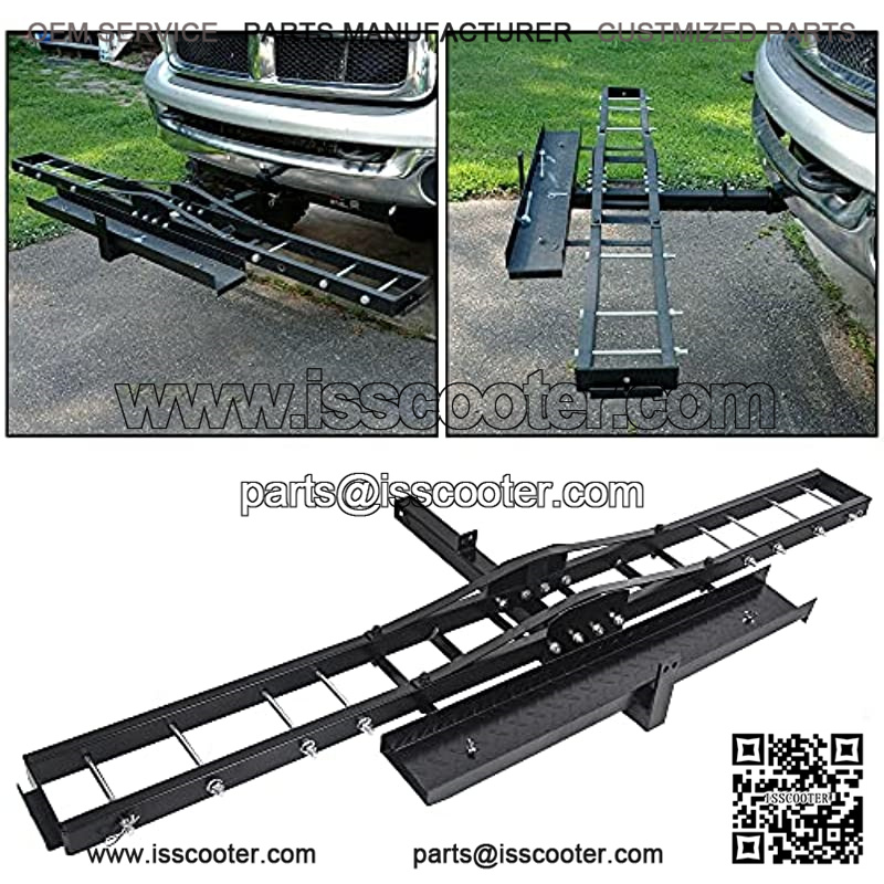 Please Note: Trailer hitch pin not included Specification 500 lbs capacity; Main hitch tube: 18″(L); Loading ramp: 38.5″(L) x 4.75″(W); Carrier overall dimensions: 76″(L) x 7″(W)