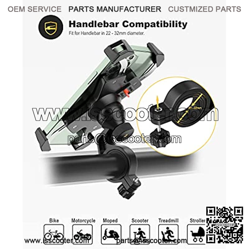 ??Handlebar Compatible??Suit well with various types of bicycles, motorcycles, stroller, shopping cart, electric scooter, indoor treadmill, spin bike, any handlebar base diameter can range from 0.86 inch (22mm) to 1.25 inch (32mm) Inside. Bike Phone Mount-PB05AD