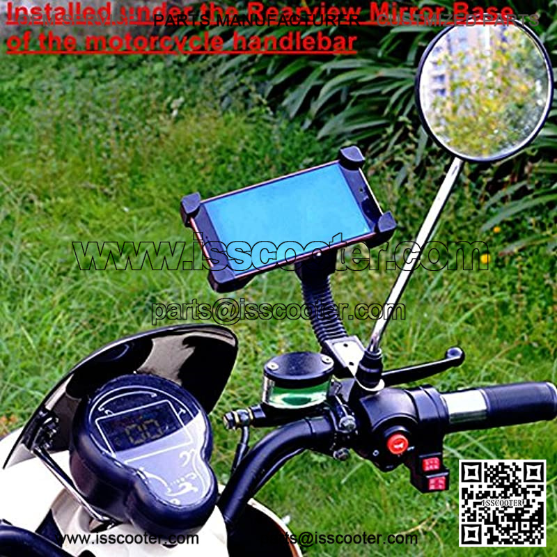 -Directly installed under the rearview mirror base of Motorcycle Bike / Scooter / Motorbike / Electric Vehicle, Stable and secure support for your phone.