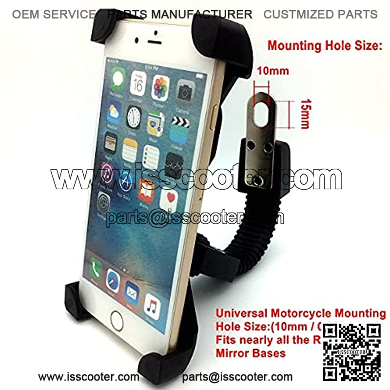 Durable & Universal Use: Mainly made of light weight quality plastic and aluminum material: Durable / Strong / Adjustable, and the Motorcycle mounting hole (Size: 10 mm / 0.39 inches) is applicable for most Motorcycle Bike / Scooter / Motorbike / Autobike / Electric Vehicle Rearview Mirrors Base. and Assembly-free design (no need connecting phone holder and motorcycle bracket), easy to use