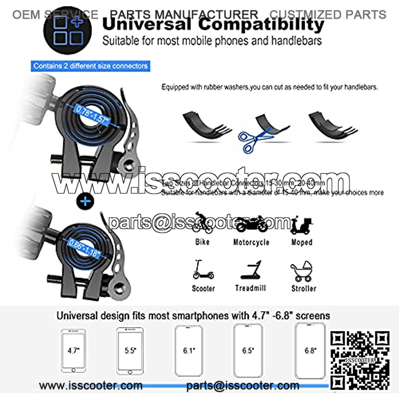 ??Two connectors??Two types of handlebar connectors: 15-30mm; 20-40mm.Suitable for various types of bicycles, mountain bikes, motorcycles, shopping carts, and electric scooters with a handlebar diameter of 15-40mm.
