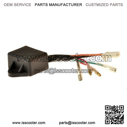 Here is our scooter CDI for 50cc, 2-stroke 1PE40QMB Minarelli Yamaha Jog based engines and scooters. This scooter part is a 5-pin CDI that has four single wires and a 2-pin female plug. Compatibility
