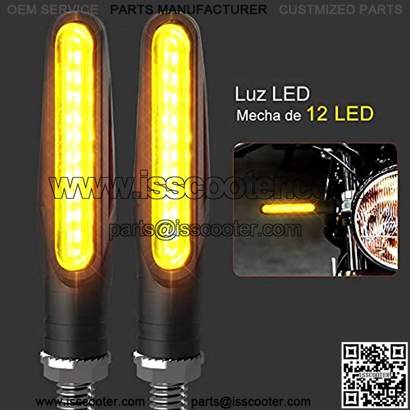 [4 luces para motocicleta]: Viene con 4 luces, TAMA O DE LUZ: 10,4 x 1,7 x 2CM, apto para motocicleta, scooter, quad, cruiser, Harley, Kawasaki, Yamaha, Suzuki, todoter.[Modo de flujo de rendimiento, S??per brillo]: las luces LED de se al de giro de la motocicleta son de color ??mbar con un dise o mezclable. Luces LED de se al de giro de motocicleta incorporadas 315 luces laterales, alto brillo, bajo consumo de energ??a.[Carcasa flexible]: hecha de pl??stico ABS de alta resistencia con acabado de fibra de carbono, tiene un mango curvo altamente flexible, que puede prevenir ca??das accidentales de manera efectiva.[F??cil de instalar con 2 cables de conexi??n]: Luces directas de se al de giro de motocicleta atornilladas con 2 cables de conexi??n (el negro es positivo; el rojo es negativo), el dise o de dos cables incluye ambos cables conductores para montaje en todas las superficies. Outdoor sports LED lights Como marca que se cre?? en