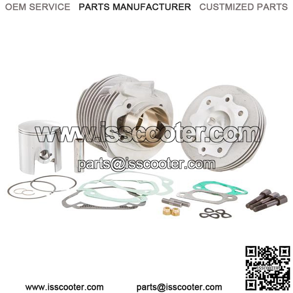 Eventually even original cylinders need replacing. Tino Sacchi presents with the Mugello a high quality production performance orientated cylinder kit as an excellent upgrade for your daily runabout scooters motor. The Mugello 186cc kit is similar in design to the original INNOCENTI TV 175 barrel apart from the extra boost port provided as a welcome update. This kit is not only suitable as a direct ‘Plug and Play’ replacement for your worn existing cylinder on Series 1-3 ‘smallblock’ motors with crankshafts with 107mm rod, but also lends itself to the more ambitious road tuning projects. The same is also true of its ‘Big Brothers’ in this range of cylinders. The Mugello 200 and 225cc cylinder kits are bas