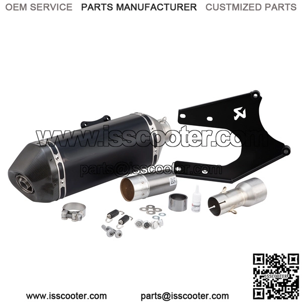 The black coated stainless steel silencer in a sporty slim design and with an engraved logo is connected to a link pipe also made of stainless steel and is completed by a handmade carbon end cap that perfectly matches the lines of the scooter.