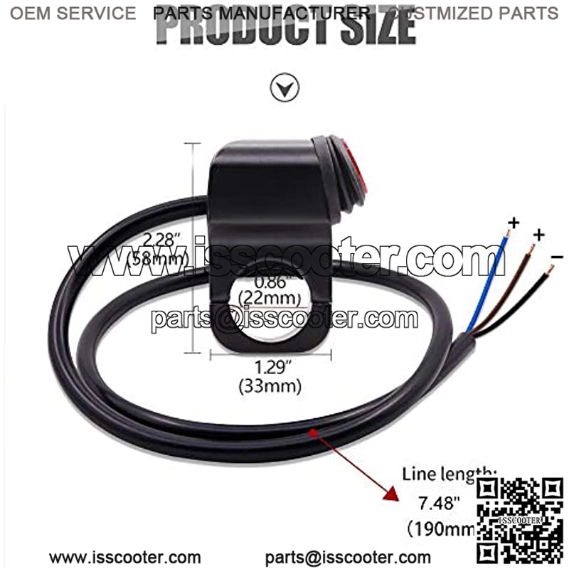 12V Universal switch, fits for handlebar in diameter: 22-23mm (7/8″ inch),