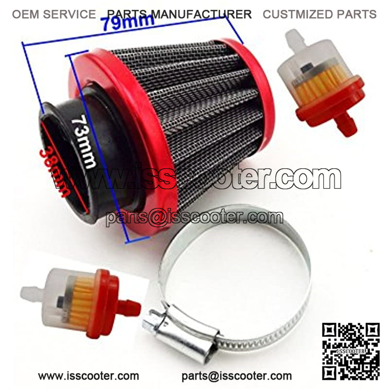 Fits: Red Motorcycle 38mm Air Filter Fuel Cleaner For 50 90cc 110cc 125cc Pit Dirt Bike ATV & GY6 50cc QMB139 Engine Moped Scooter