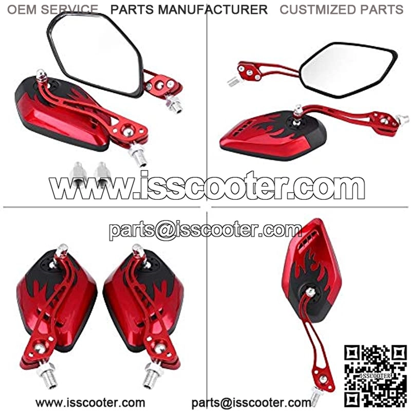 Replacement Motorcycle Rearview Mirror, 1 Pair Universal Scooter Aluminum Flame Pattern Rear View Mirrors With 8mm/10mm Screws (Red)