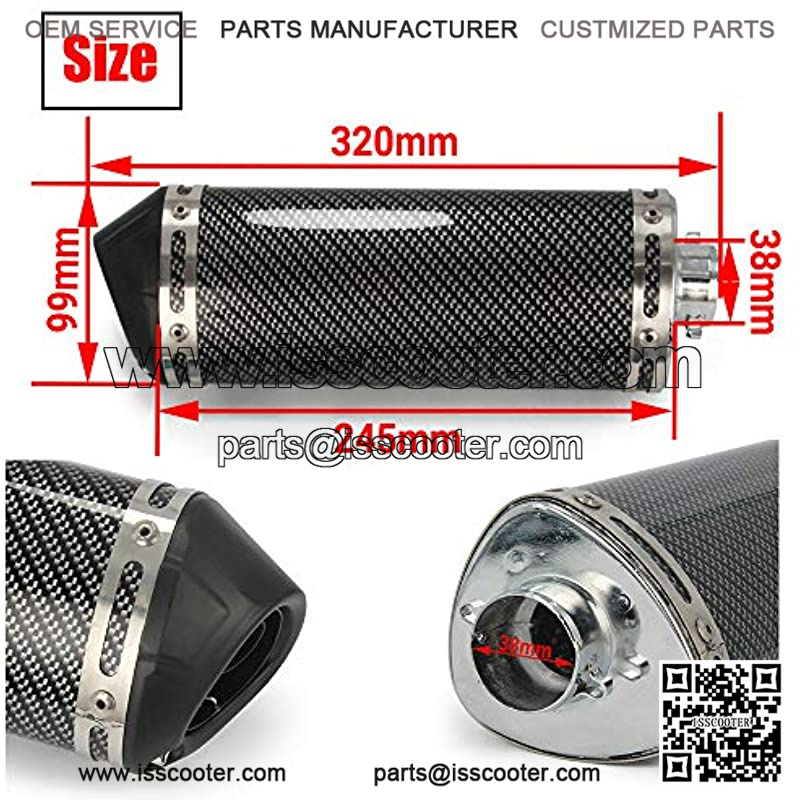 SPECIFICATION: The body is made of stainless steel covered with carbon fiver color vinyl that make the exhaust looks Luxury and attractive