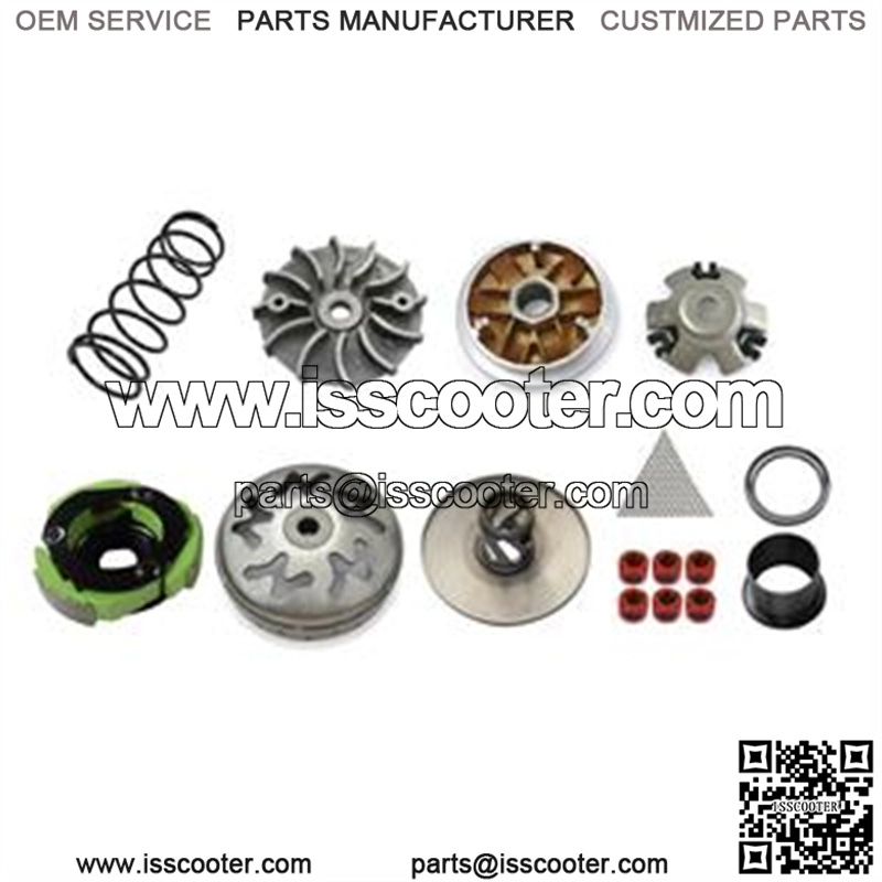 NCY 1st Generation Transmission Power Pack for 125cc – 170i GY6 Scooters, ATVs, and Go KartsINCLUDES: Ultralight gold specially coated overdrive variatorFinned Aluminum outer drive faceUltralight large shoe racing clutchNew Style Ultralight drilled & vented clutch bell (99 grams lighter than previous NCY Bell)Dual range secondary slider1000 RPM compression springBall bearing compression spring seat12 Gram 18×14 Roller WeightsOur extremely popular Gen 1 GY6 transmission kit is now available again. This kit comes with the finned drive face, N style clutch bell, 1000RPM clutch spring, and all of the other goodies that have made our trans kits so successful. **Recommendations: Use a new belt with this kit. Use graphite or Moly grease when assembling**