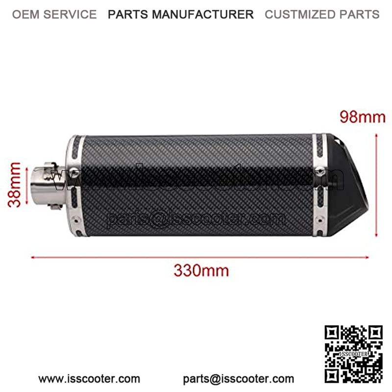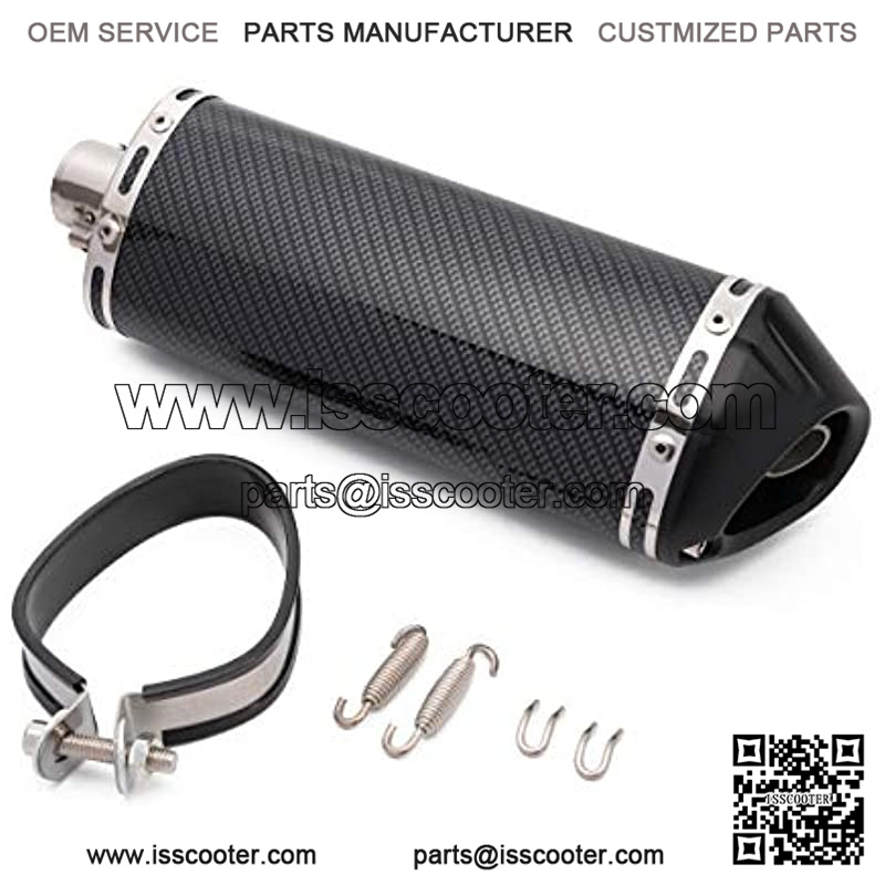 Material: Stainless steel, and covered with carbon fiber color vinyl that make the exhaust looks Luxury and attractive