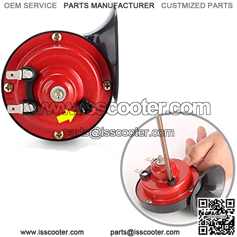 Super loud electric horns, loud enough to get people’s attention adjustable volume control setting (the black button on backside is for volume control could adjust it when power connected)