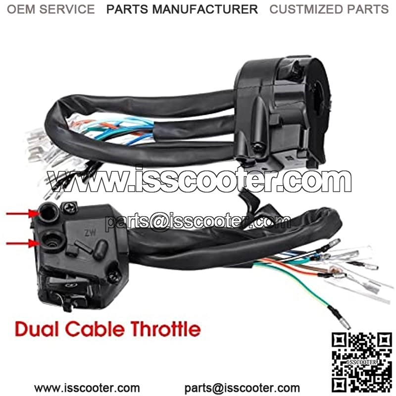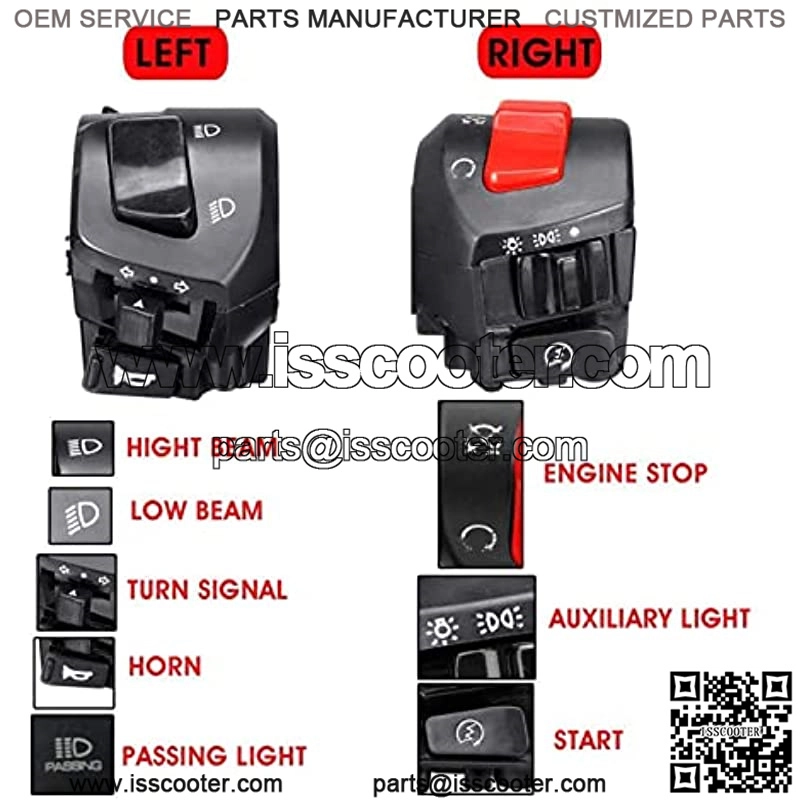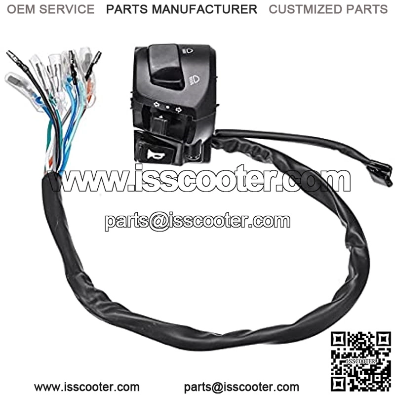 -Function Integrated with Engine Stop Flameout switch, Electric start switch, headlight on/off switch, Turn Signal Light change-over switch, Horn, Low/Hi gh Beam Switch, PASS Switch.