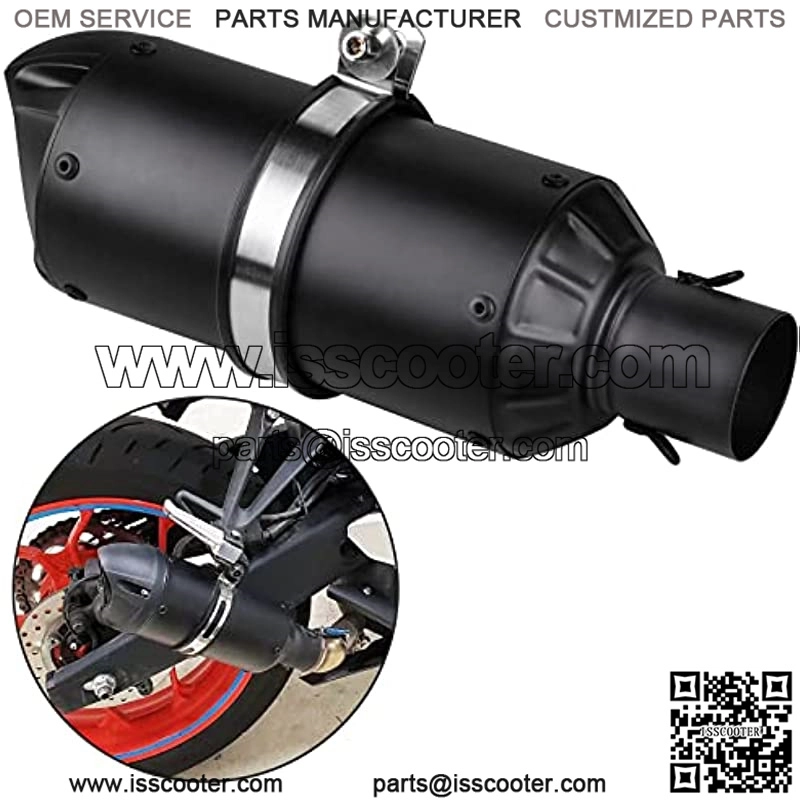 Material: Stainless Steel & surface high temperature paintOverall Length: 295mm, Connection: 51mm Slip-on typeThe body made of stainless-steel connector, Removable DB killer, offers difference sound effectIncludes mounting clamp and spring puller and fixed ring, very easy to install, can be installed within 5 minutesFitment:Universal fits for Street/Sport Motorcycles, ATV and Scooters with 51mm diameter exhaust pipesProduct DescriptionFeatures: 100% Brand new Refit Exhaust Muffler, High Quality, Removable DB killer the body is made of Stainless-Steel Material, Surface use of high temperature paint, after the high temperature does not change the color, canbe fall off and never rustUniversal fits for Street/Sport Motorcycles, ATV and Scooters with 2” diameter exhaust pipesSpecifications:Material: stainless steelColor: Matt BlackLength: 295 mm(11.6 inch) Connection Diameter: 51mm(2inch)Package Size: 32 * 15 * 12cm / 12.6 * 5.9 * 4.7inPackage Weight: 1400g / 3.1lbs.Fitment:The Universa